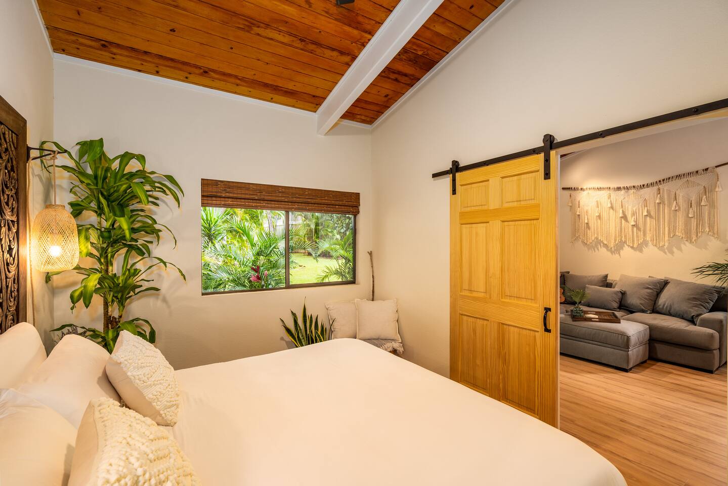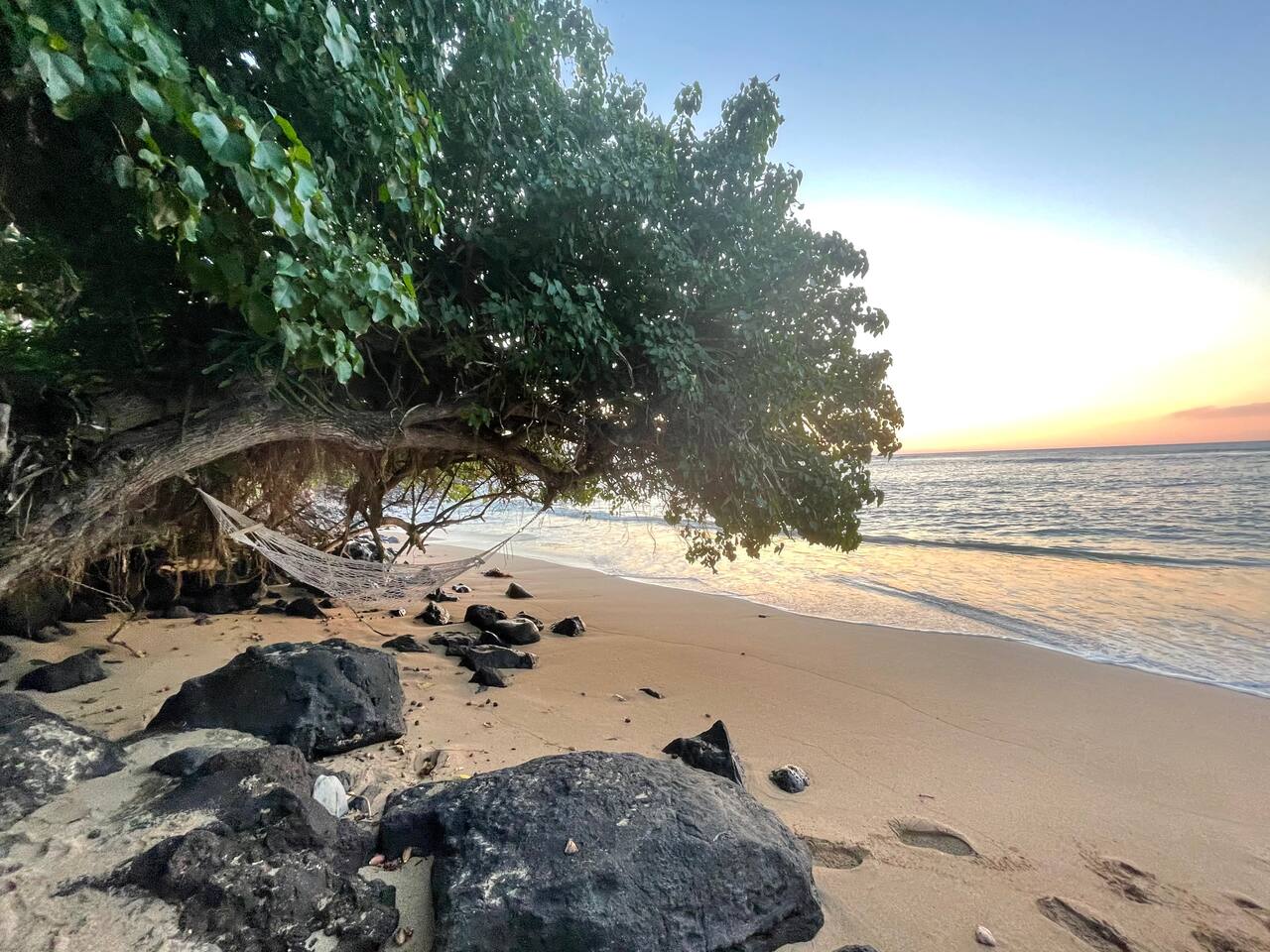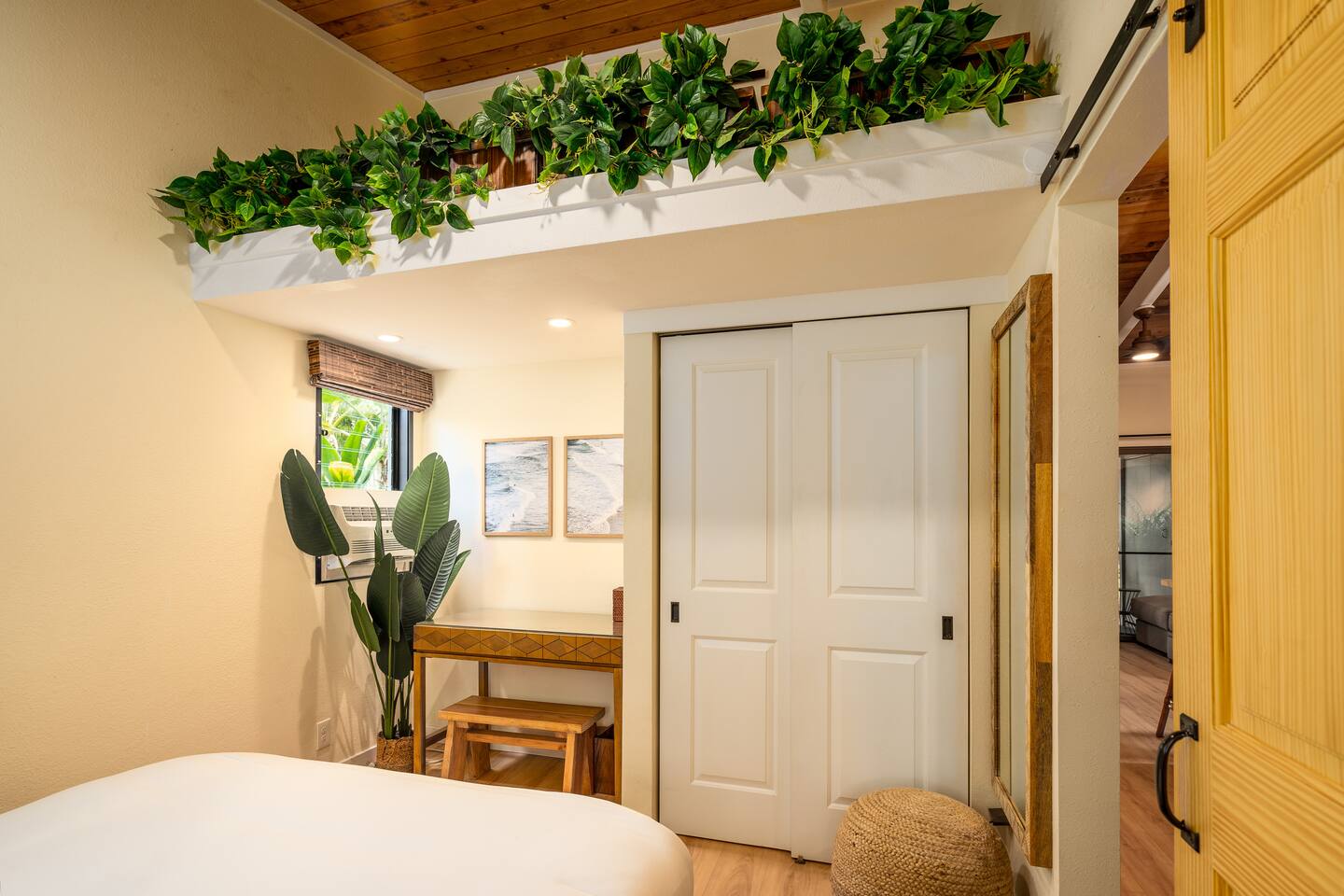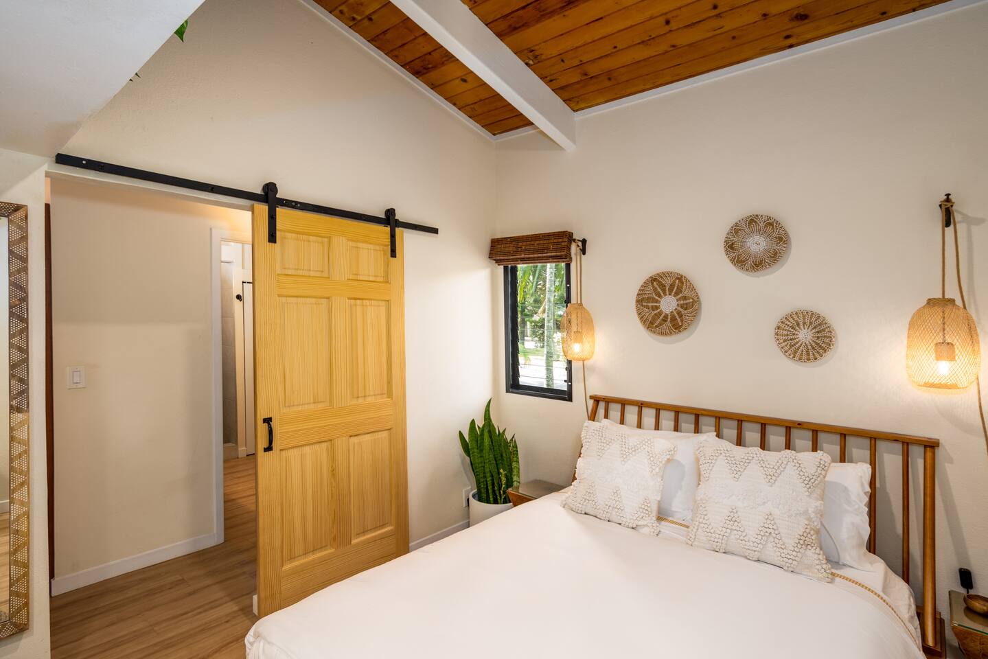 Wake up to the sounds of the palms dancing in the wind, tropical birds singing and waves crashing. Enjoy your complimentary morning coffee or tea with the ocean breeze, monarch butterflies and sea turtles. All with stunning views of neighboring islands Moloka‘i and Lanai just steps from your front door. During fruit season, pick your own breakfast from the mango tree right off of your private lanai, or enjoy many of the other tropical fruits the fruit plantation has to offer. Walk to 2 local beaches and several restaurants. Take in the rainbows over the gardens and ocean. Experience the warm trade winds, sandy surf, breathtaking views and glittery stars at night. In the winter months watch whales and dolphins play from the oceanfront lounge. _______________________ Our love shack was designed to bring complete relaxation and bohemian aloha vibes for the dreamy vacation you deserve. As you arrive to the property, you’ll have reserved 1 car parking right next to the house, perfectly situated underneath the apple banana trees for a tropical welcome! Upon entering you'll find soaring high ceilings throughout the property. The great room is perfect for entertaining with a fully equipped kitchen, island seating and open layout that flows to the oversized cloud-style couch. Pair your phone or laptop to the sound bar and enjoy music all day. We also have a 55” 4k HD Smart TV equipped with complimentary Netflix and cable, perfect for enjoying a movie after a long day at the beach. Seamless indoor/outdoor living— the great room opens up to the sunny and private lanai covered in lush tropical landscaping. Features include a large dining table, guest amenities closet, towel hooks, lounge chair as well as a swinging hammock chair. The perfect sanctuary to read, meditate, entertain, dine, catch up on some work or do some yoga. The main bedroom provides a king sized nectar memory foam mattress, situated under an oversized mandala headboard hand carved in Thailand. Lush jungle views from both windows, handmade furniture, and plenty of closet space. The second bedroom features a queen tempur-pedic. Peek-a-boo ocean views and the perfect desk space to work from home in style with views of the banana trees. The bathroom features a private shower finished with grounding stone and an oversized, therapeutic rainfall shower head and wand. You can also find storage in the vanity as well as a washer and dryer in bathroom closet. We provide all of these extra touches to make your stay as comfortable as possible: - We only provide organic sensitive skin products (EO & Puracy only!) - Free Wifi - Black out bamboo shades in every bedroom - A/C in each room - Smart G home assistant in the kitchen - Fruit picker - 2 surf boards - 2 boogie boards - 4 beach chairs - Cooler bag - Beach umbrella - 2 tennis rackets & balls - 1 basketball - Ukulele - 3 luggage racks - Cooling bamboo comforters - Extra sheets - Extra beach towels - Extra bath towels - Steamer - Q tips - Makeup remover wipes - Local fruit - Hawaiian coffee - Yogi Tea - Emergency flashlight, lanterns & extra batteries - Basic cleaning necessities - USB ports next to every night stand - Light dimmers in bedrooms, living room & kitchen - Mid stay cleaning available upon request for additional fee _______________________ We would be very happy if you leave us a review after your stay. It helps us provide the best guest experience possible, especially if you describe how you spent your time and what you explored in the area :) _______________________ *All photos taken on or a short distance from the bungalow*